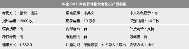 科密指紋OK-168卡鐘